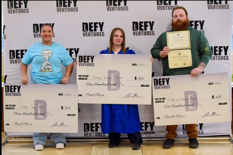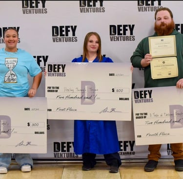 Bethany was recently able to participate in a program offered by Defy Ventures. She successfully graduated from the program and won the business proposal competition!